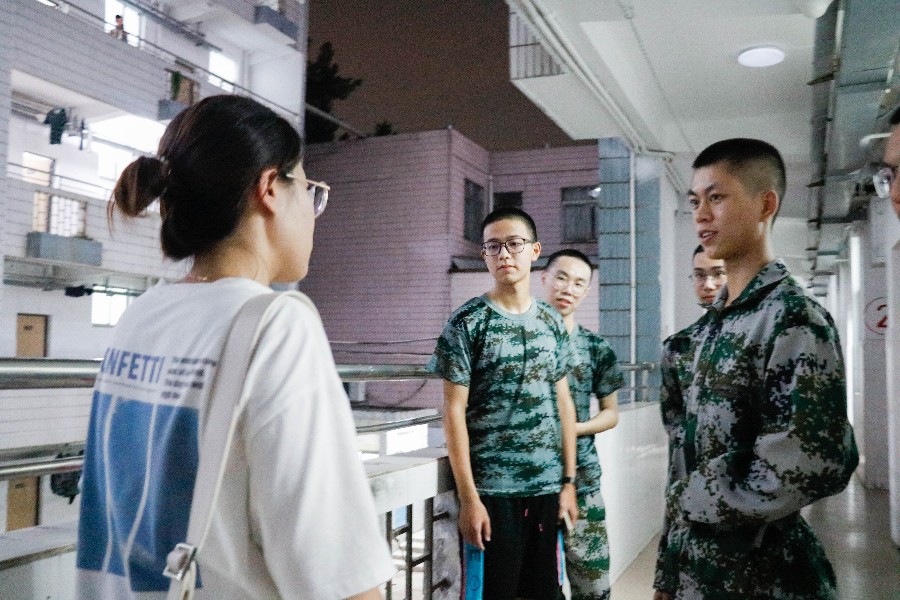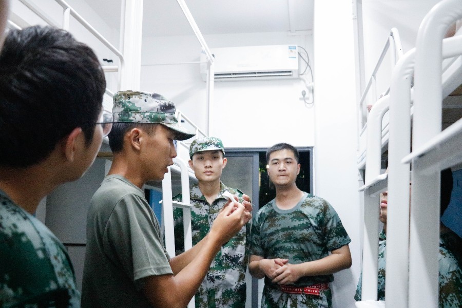 教官们先后来到各新生宿舍,对学生内务要求做了详细的说明,并为同学们做了现场示范。稍后对宿舍内部、阳台、洗漱间等地方进行仔细检查,并对用电问题、门窗安全等相关设施重点检查。在走访过程中,新生宿舍卫生状况普遍较好,地面、桌面干净整洁,被褥衣物叠放整齐,能够及时清理生活垃圾、做到安全用电。检查中,21级辅导员表扬了新生高水平的内务状况,并细心询问新生在生活方面的需求,鼓励新生养成良好的生活习惯,期待新生的宿舍环境能够长期保持。