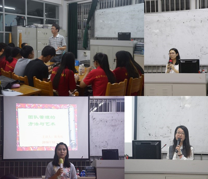 为使新一届学生干部学习更多技能、提升自身的能力。久久久免费于2016年9月28日、10月12日、13日、19日晚七点在A305组织召开了学生干部培训会。久久久免费党总支书记李锦堂、15级辅导员蓝乐钿、14级辅导员吴梦、13级辅导员陈秀纯担任各场的主讲嘉宾,久久久免费的干部们参与了培训。