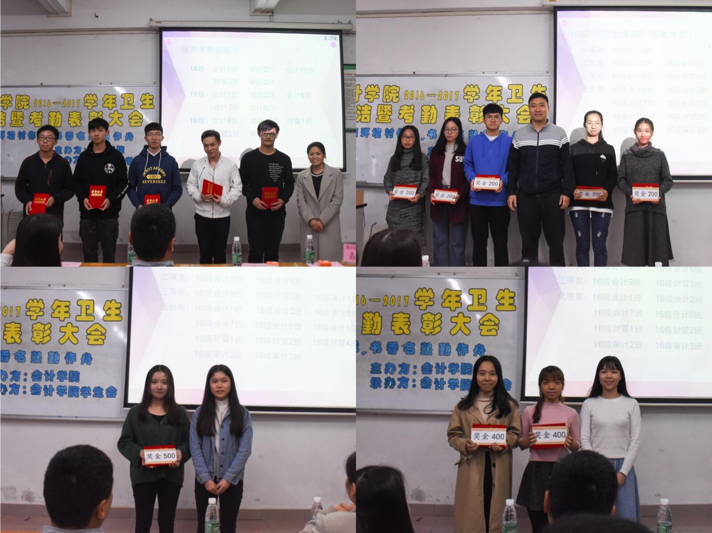 本次表彰大会分设视频欣赏、颁奖环节、优秀生委、组委分享工作经验、嘉宾讲话四个环节。在第一环节的“视频欣赏”中,向大家介绍了优秀生委、组委和课室卫生;第二环节的“颁奖环节”,为16级“卫生清洁”班集体奖、14级、15级、16级“优秀考勤班级”、16级优秀生活委员、组织委员、14级、15级、16级“优秀纪检委员”获奖者颁奖;第三环节的“优秀生委、组委分享工作经验”中,由优秀代表发言,她们分享了在工作中所获得的心得和经验,以此同时,希望17级的生委、组委在工作中能够尽力尽责,为校园文明环境奉献力量;第四环节的“嘉宾讲话”中,梁亮老师对所有生委、组委的辛勤付出表达了感谢,并强调成绩只代表过去,过去已成为历史。希望学生干部继续保持和发扬团结协作的团队精神,严谨科学的实干精神,追求卓越的创新精神,爱岗敬业的奉献精神,以昂扬的斗志、过硬的素质和出色的表现,不断开创我院学生会工作新局面。最后梁老师希望17级生委、组委以他们为榜样,向他们学习。