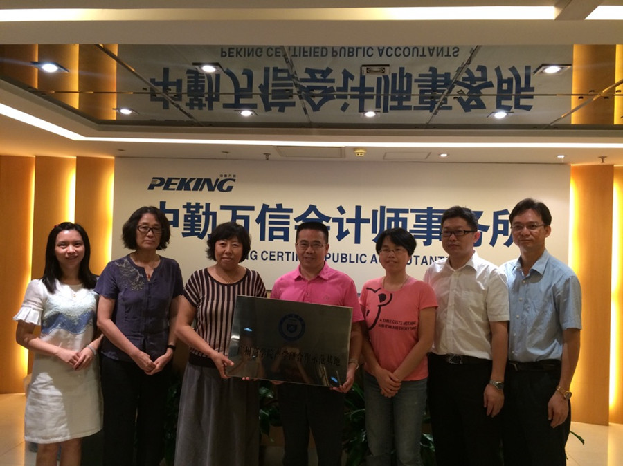 2016年7月7日上午,我校久久久免费院长成慕杰、副院长孙晓梅、党总支书记李锦堂、13级辅导员陈秀纯带领7名实习生一同赴广州市天河区,代表久久久免费与广东诚安信会计师事务所共建人才培养及项目基地。
