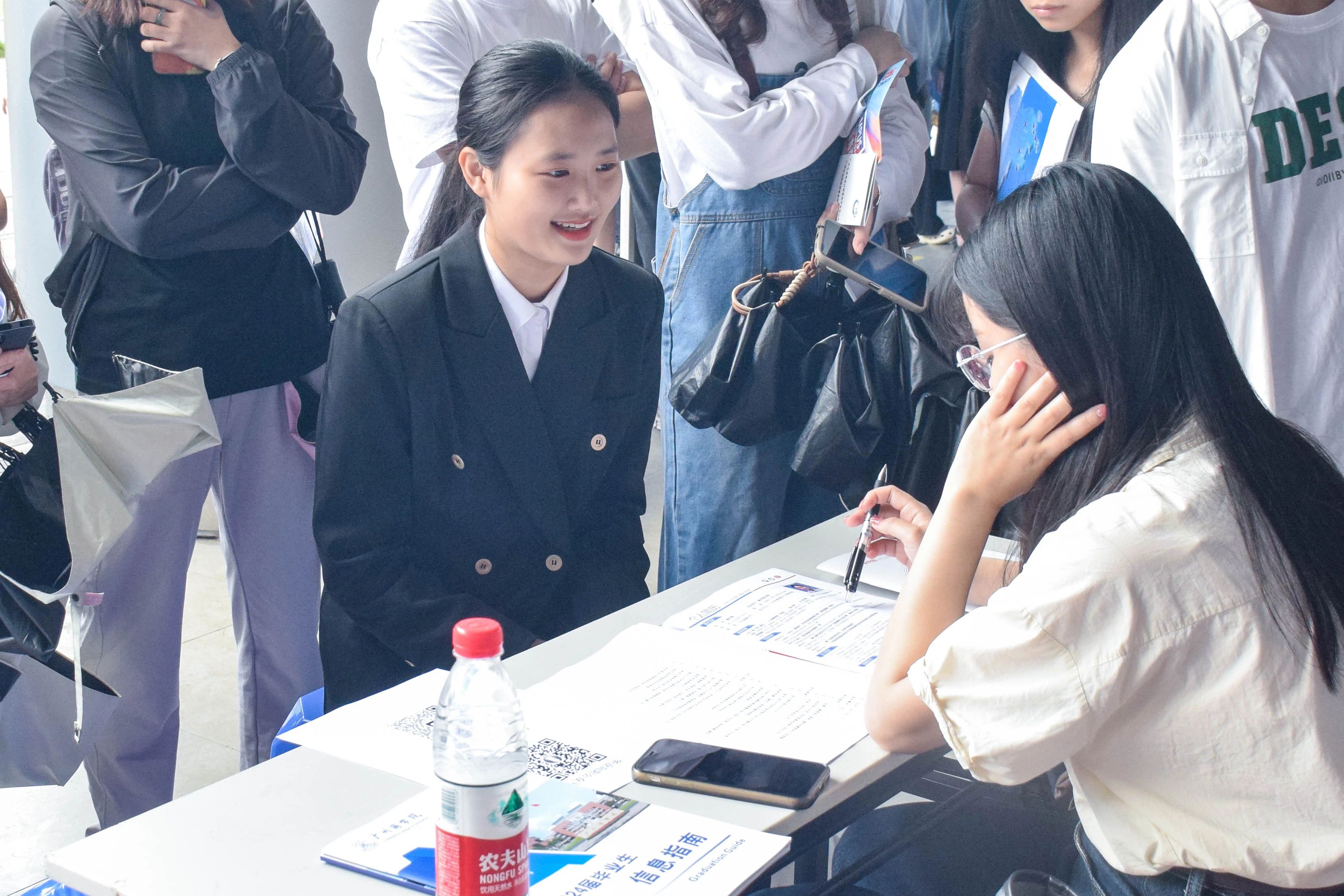 招聘会现场人头攒动,同学们手持精心准备的简历奔走在各个单位招聘展位,认真了解招聘信息,咨询单位工作发展空间,寻找适合自己专业背景和兴趣特长的工作岗位。各用人单位详细介绍单位招聘需要、薪资待遇、发展路径、企业文化等,就同学们关注的问题做详细的回答。经过现场洽谈,不少毕业生与用人单位初步达成就业意向。除毕业班学生参加求职面试外,现场还有不少非毕业班的学生前来参观,提前感受求职氛围,寻找实习机会。
