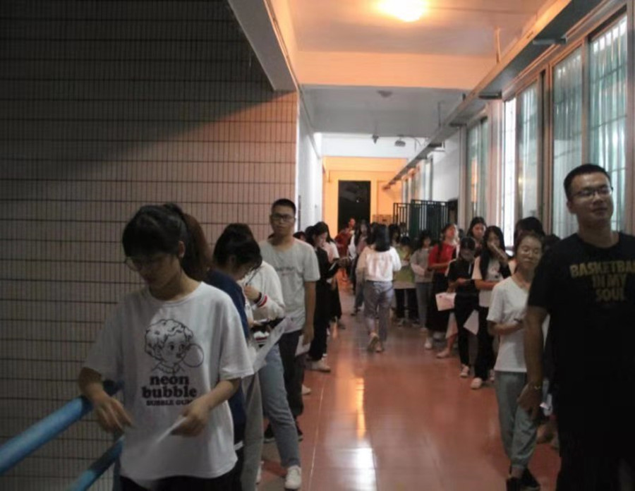 第一阶段为宣传阶段。社团联合会提前通过学校公众号发布相关信息,同时会计协会通过各班班群进行广泛宣传。紧接着会计协会于2019年10月21日至22日晚在广商足球场上进行摆摊,发派传单和报名表。在现场,会计协会的工作人员向新生介绍协会、解答新生问题,达到了良好的宣传效果。此外,宣传期间协会指导老师赵聪莅临现场指导工作,为招新工作添砖加瓦。摆摊期间,同学们踊跃在网上报名,幕后工作人员也及时进行统计分类工作,过程循序渐进。第二阶段为面试阶段。2019年10月23日,第一轮面试分别于三教301教室和303教室进行,并由各部门的正副部长作为面试的评审团。一轮面试准时开始,现场井然有序。同学们手持报名表,在课室外有序地等待面试。上场的同学各显其能,充分展现新生积极向上的面貌。面试期间评委团对各位同学进行相关提问,并根据同学们临场应变能力和态度,选出一批有质量的学生进入二轮面试。二轮面试于10月24日晚进行,各个部门根据其部门特色进行不同内容的面试,通过整个过程的观察,最终确定协会入选同学并于当晚进行短信通知。
