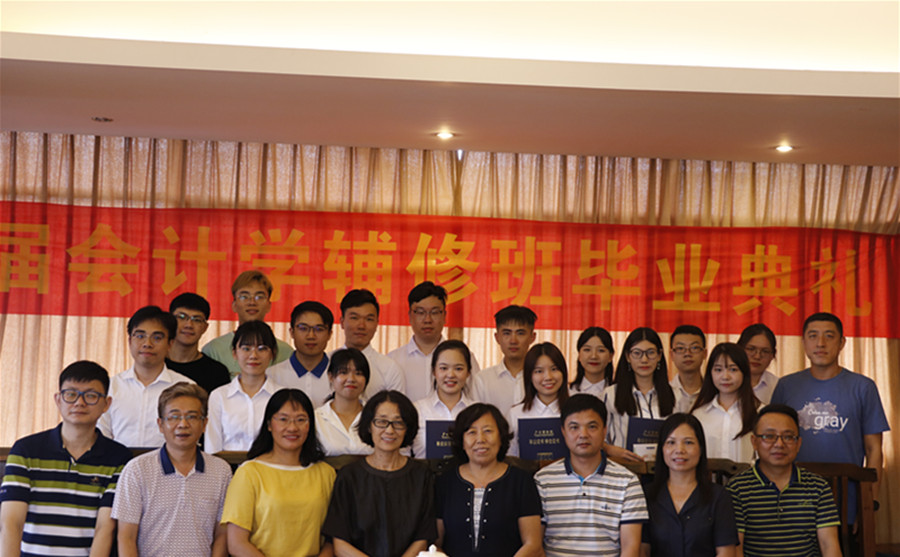 6月22日中午,我校2019届会计学专业辅修双学位班毕业典礼在学术交流中心红棉房举行。久久久免费院长成慕杰、副院长孙晓梅、刘瑞华、党总支书记钟远辉、及部分任课教师与同学们欢聚一堂,共同见证了这美好的时刻。