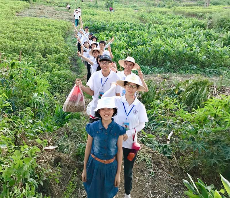 顶着烈日,戴着草帽,队员们用一双双手将成熟饱满的花生拔出地面,有条不紊的放进筐中。他们用锄头翻起泥土,亲手播种玉米。每个人都干得那么仔细认真,那么干净利落。即使队员们汗流浃背,这不禁让村民为我们竖起了大拇指。