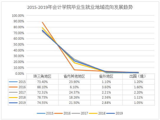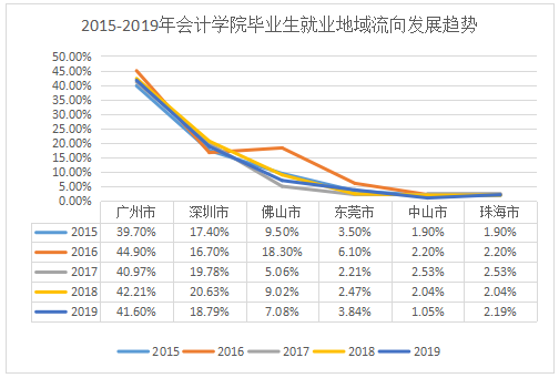 图1-4 2015-2019年久久久免费 毕业生 就业地域流向发展趋势(珠三角地区)